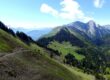 Il nous faut encore aligner courtes montées et descentes pour passer les 3 mollards er atteindre le sommet du Grand Chat (1 992m). Fin des dénivelés positifs ! Nous poursuivons dans les alpages sur la crète jusqu’au Col du Champet (1 722 m). De là, une courte descente dans la forêt nous ramène rapidement au parking des Teppes Vertes.